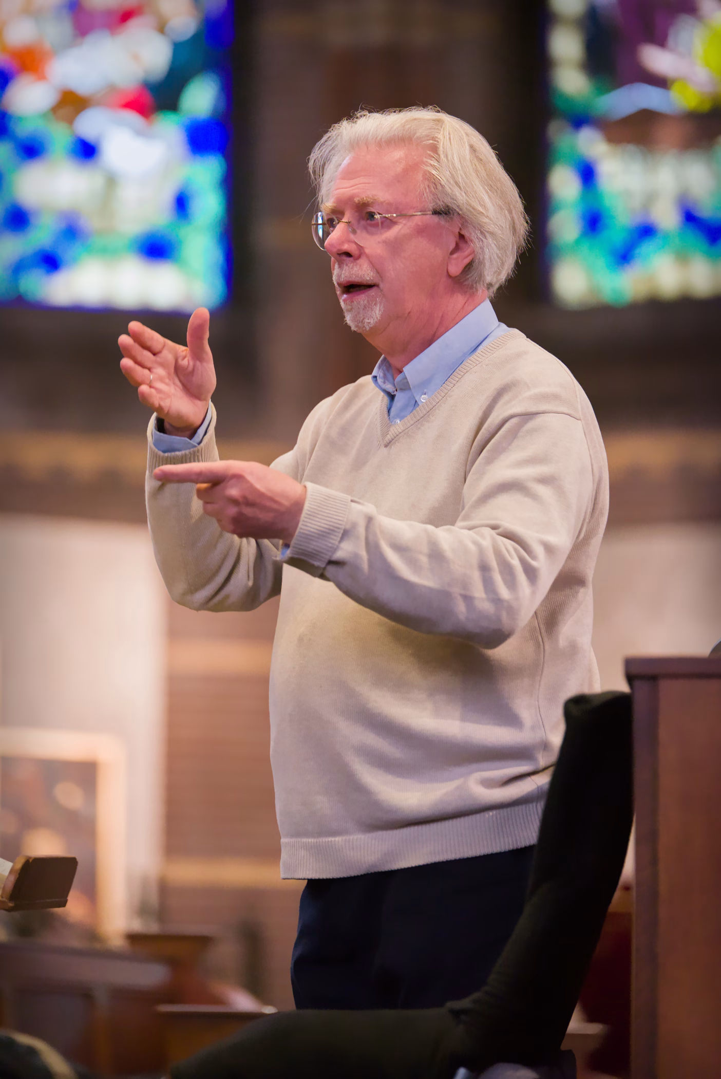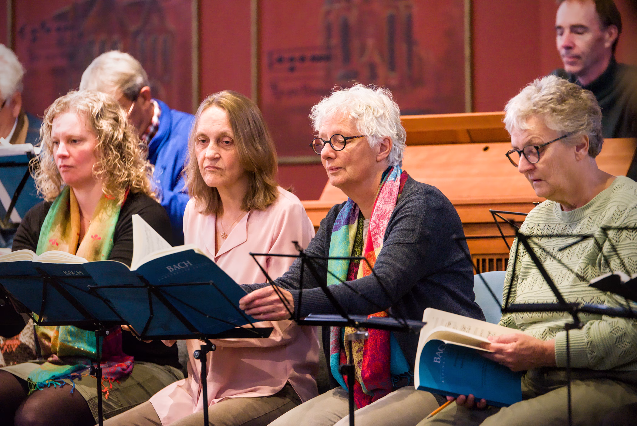 Het publiek kon er getuige van zijn hoe Jos met het koor werkte aan een aantal delen van de Hohe Messe en hoe wij zijn uitleg in de praktijk brachten.