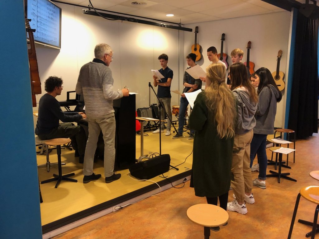 Vrijdag 15 november heeft Nico van der Meel een gastles verzorgd op het Johan de Witt gymnasium in Dordrecht. Met een aantal leerlingen, die muziek als eindexamenvak hebben gekozen, werd in samenwerking met docent muziek, de heer Saul de Caluwé, gewerkt aan enkele koralen uit het Weihnachtsoratorium. Deze leerlingen zullen deze koralen ook met de uitvoering op 20 december meezingen.